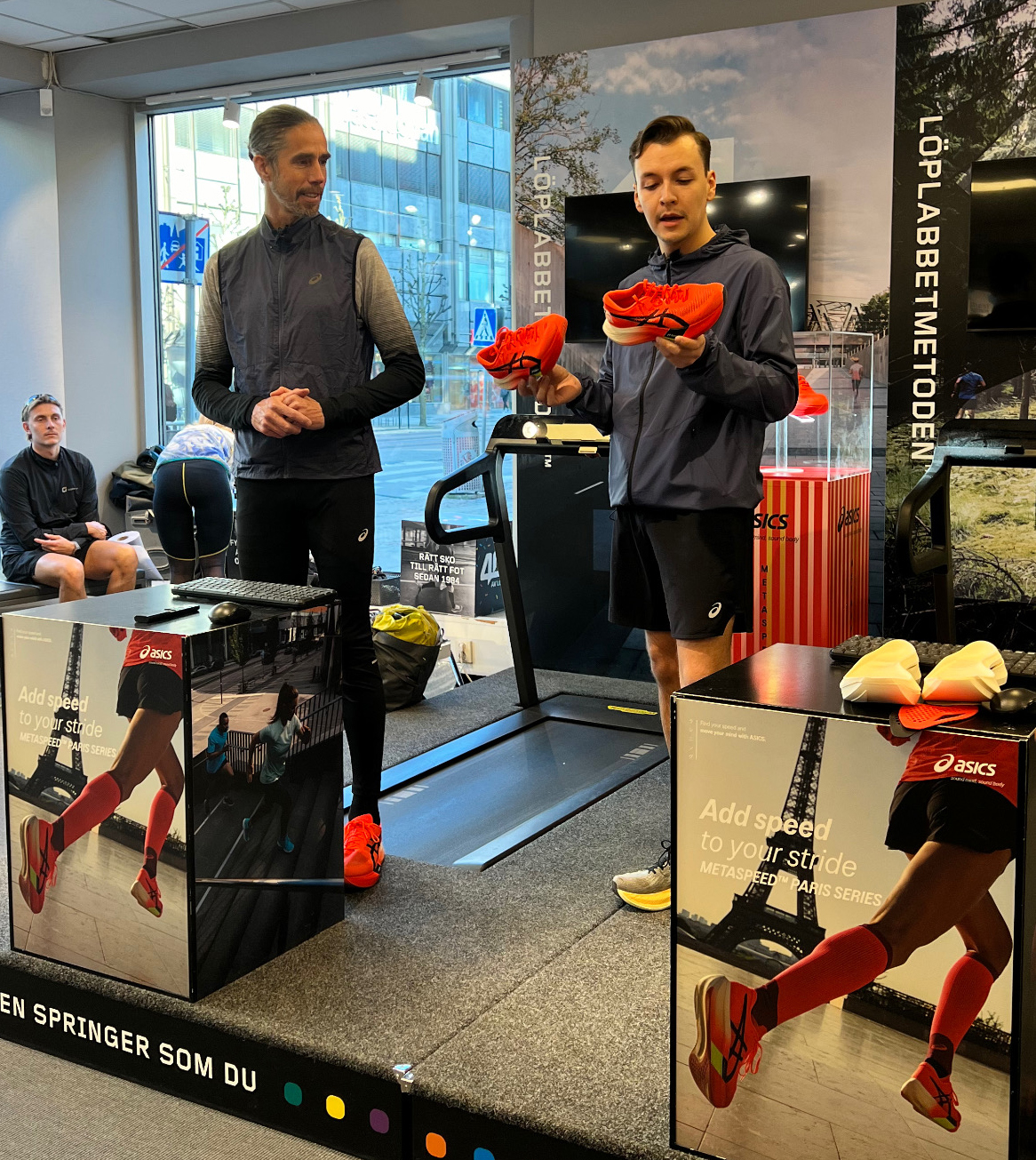 [ANNONS FRÅN ASICS] Ett 40-tal löpare dök upp när 40-årsjubilerande Löplabbet bjöd in till ett träningsevent tillsammans med ASICS, som utgick från Löplabbets butik i Göteborg. Inledningsvis presenterades tävlingsskon Metaspeed Paris som har gjort stor succé – så pass att den nästan är slutsåld i hela Europa. Den kommer däremot finnas tillgänglig igen i större utsträckning i sommar.