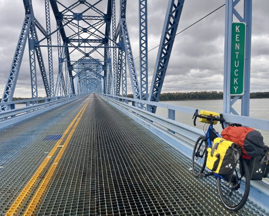 Med hjälp av typ fyrahundra lager isoleringstejp blev pakethållaren något mindre skakig och jag kunde därmed ta mig, via några kilometer i delstaten Georgia, till busstationen i Chattanooga för vidare transport till en cykelverkstad i Atlanta.