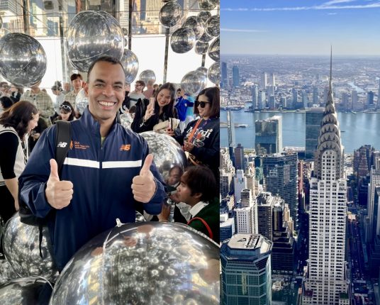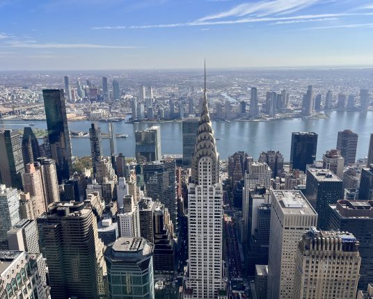 Segrarna i New York City Marathon, Hellen Obiri och Tamirat Tola. Hellen vann tidigare i år även Boston Marathon och blev därmed den första kvinnan att vinna denna dubbel sedan Ingrid Kristiansen lyckades med bedriften 1989.New York Road Runners VD Rob Simmelkjaer kunde summera ett arrangemang som var extraordinärt och som kryddades med perfekt väder. Redan nästa vecka är planeringen i gång för fullt inför nästa år och då ska de försöka toppa årets upplaga. Till höger syns toppen på Chrysler Building fotograferad från Summit One Vanderbilt.Verrazzanobron mellan Staten Island och Brooklyn, starten för New York City Marathon.