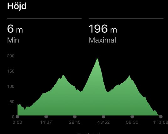 Jag började med en lätt stegrande uppvärmning i 5000 meter. På det 10×600 meter i 3.45 och 30 sekunders ståvila. Därefter 10×300 meter i 3.30 med 30 sekunder ståvila, samt avslut med 10×200 meter i 3.20.