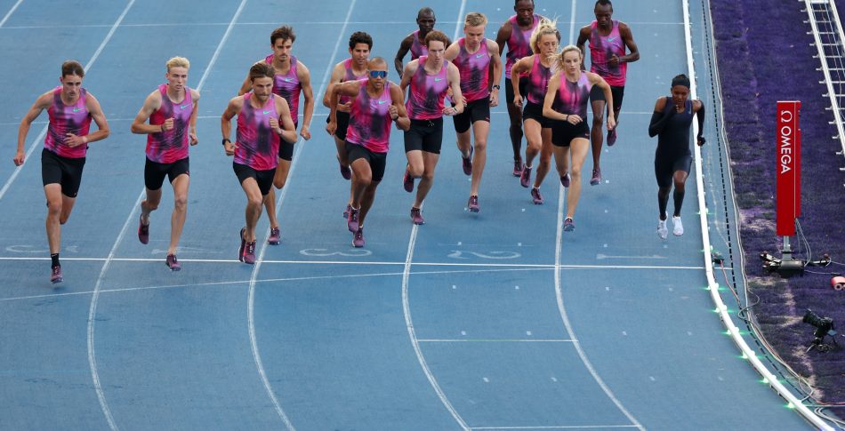 Inramningen på arenan var otrolig, publiken var laddad och banan fylldes med några av världens bästa löpare som skulle agera harar: Jemma Reekie och Georgia Hunter Bell (Storbritannien) samt manliga toppnamn som Grant Fisher och Cooper Teare (USA), Niels Laros (Nederländerna), Elliot Giles (Storbritannien) och Stewy McSweyn (Australien). De ställde upp i förbestämda formationer med syftet att hålla Faith exakt på det tempo som krävdes för att nå drömgränsen.