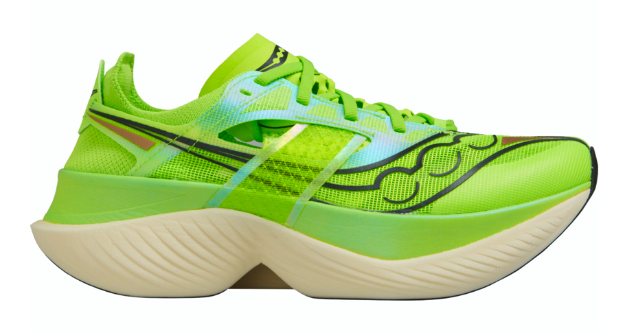 Sauconys tester med löpare på olika nivåer visar att denna nya tävlingsmodell har klart bättre energiåtergivning än andra liknande Saucony-modeller. Mycket av den effekten kan tillskrivas ett nyutvecklat mellansulematerial kallat Pwrrun HG, där HG står för ”highest grade”. Den inkapslade kolfiberplattan har dessutom en gaffelliknande utformning för att ge en mer effektiv hjälp vid steg-avvecklingen. Sultjockleken tangerar exakt regelbokens 40 millimeter i häldelen och mäter 32 millimeter i framfoten.