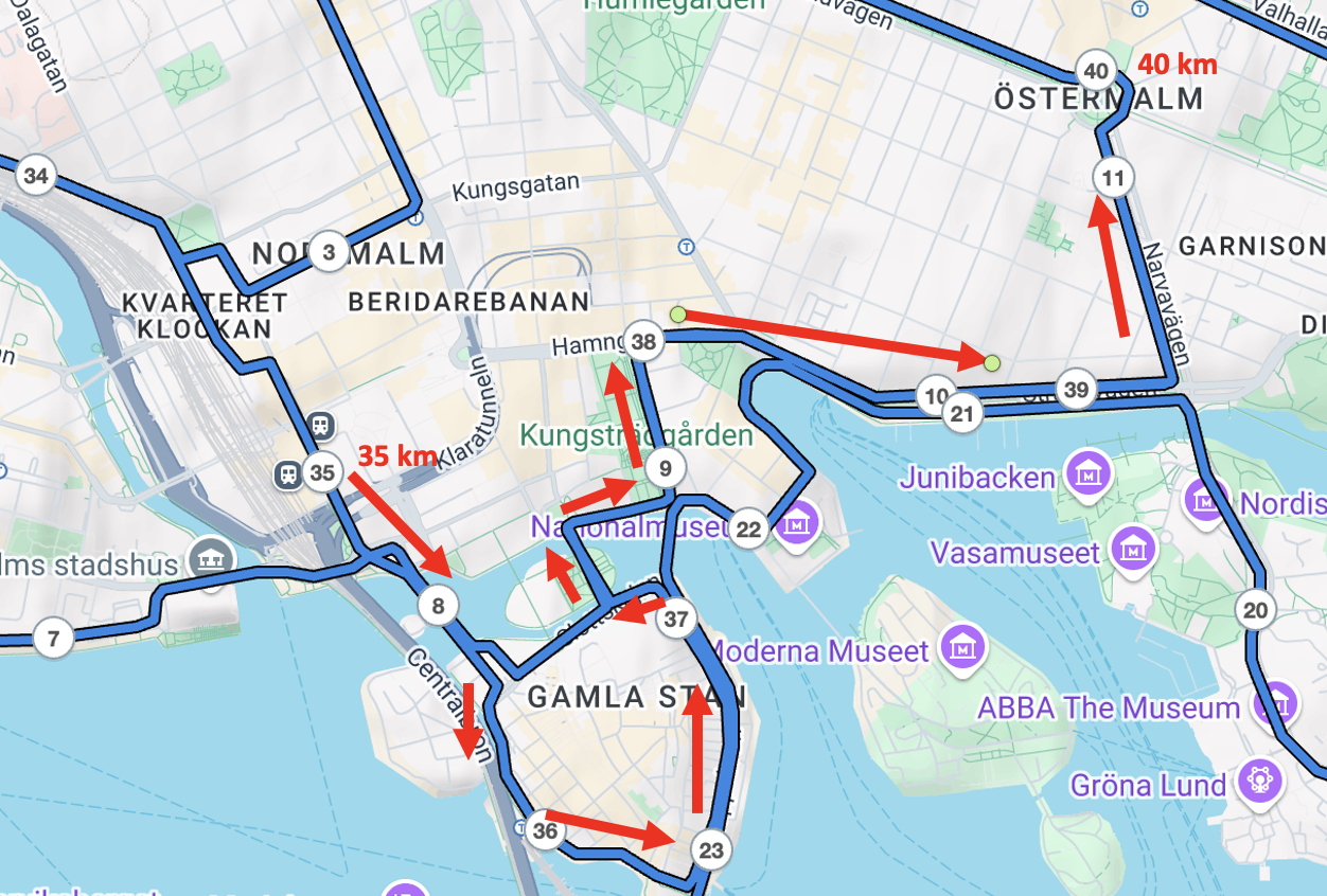 35–40 km: Gamla Stan, Strandvägen och tuffa Narvavägen