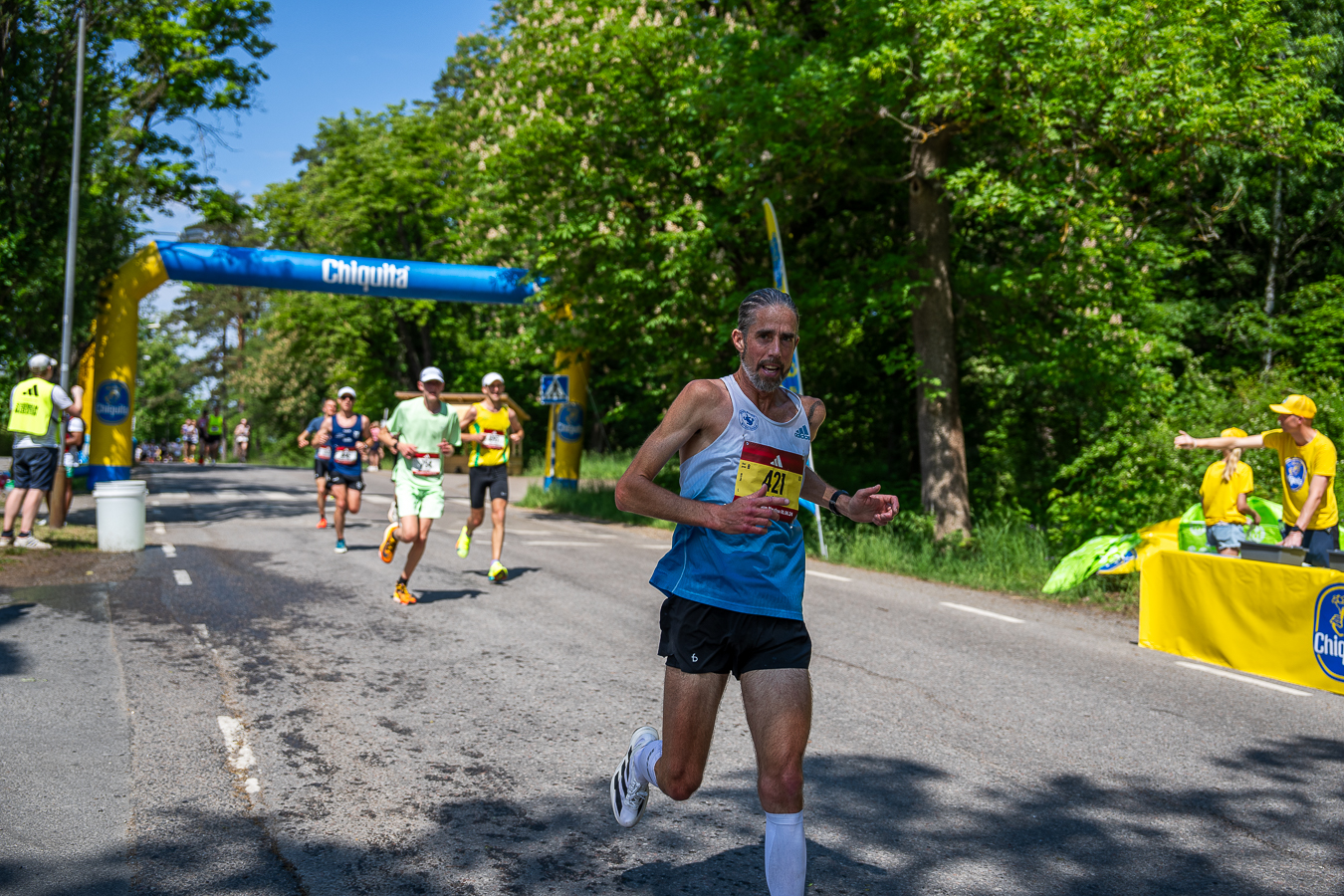 Första 5 kilometerna rankar jag som den näst snabbaste 5-kilometerssträckan. Men då man har många medlöpare runt sig i början av loppet kanske man tappar lite fart där. Undvik att stressa – kryssa dig inte fram här utan låt fältet sprida ut sig. De snabbaste löparna, som har fri löpning ganska direkt efter start, kan däremot springa denna del lite snabbare än snittfarten för tidsmålet.
