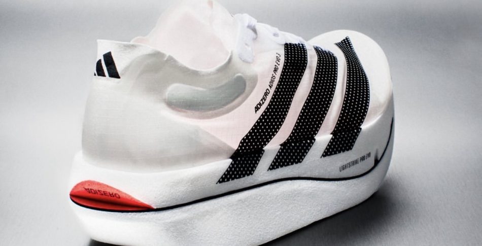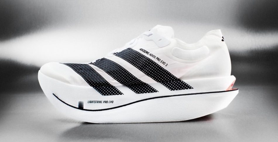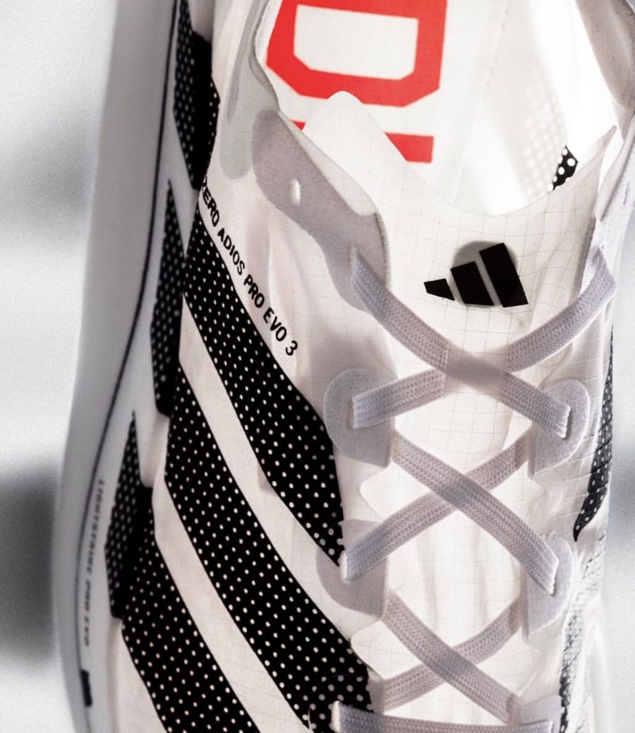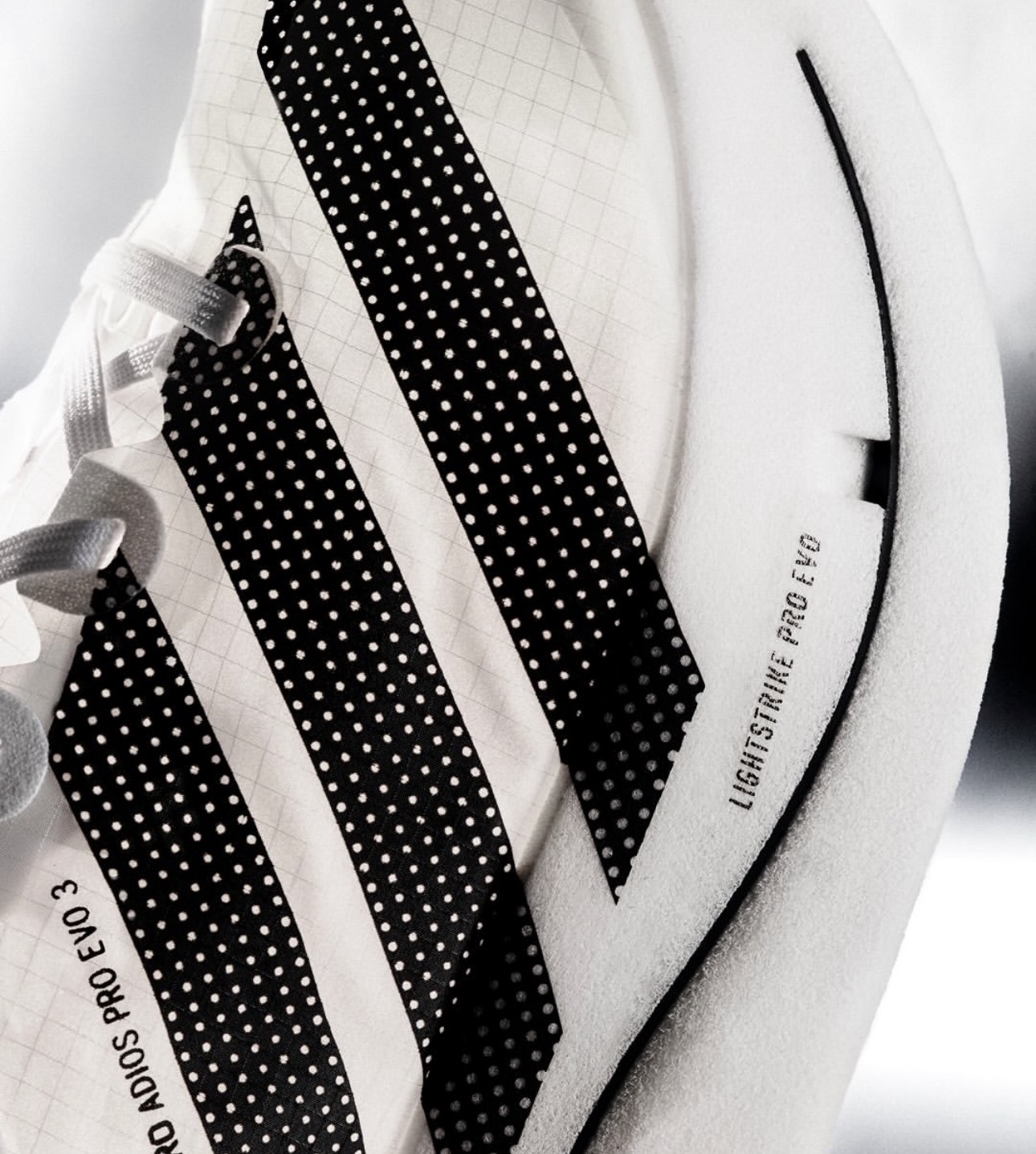 Adizero Adios Pro Evo 3 är den hittills lättaste tävlingsskon som Adidas har gjort – den väger i snitt endast 97 gram. Modellen, som lanserades dagen före rekordloppet i London, bars av både vinnaren Sabastian Sawe, Kenya, som kom in på 1.59.30, och tvåan Yomif Kejelcha, Etiopien. Kejelcha sprang också han sub 2 med tiden 1.59.41 – i sin maratondebut!